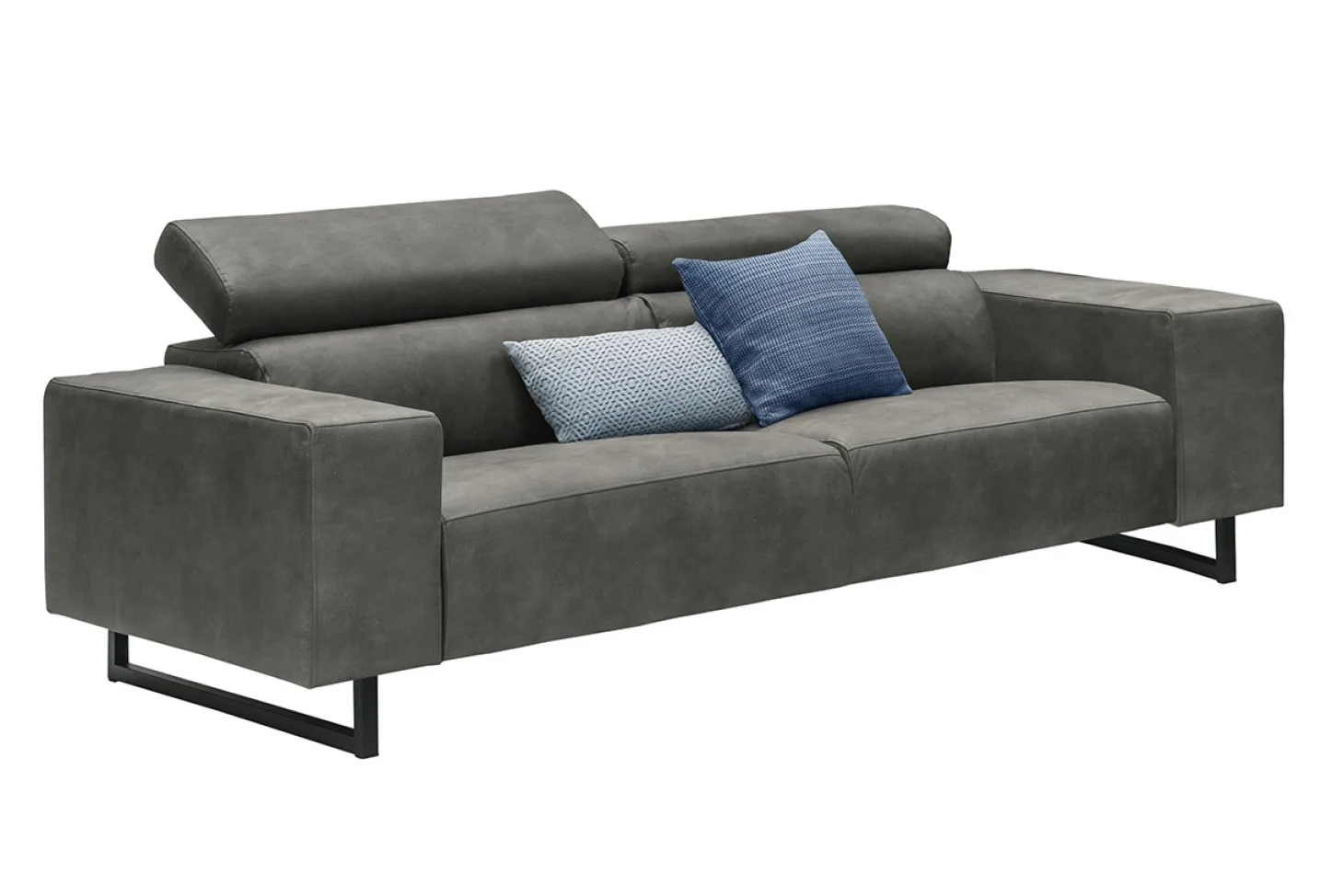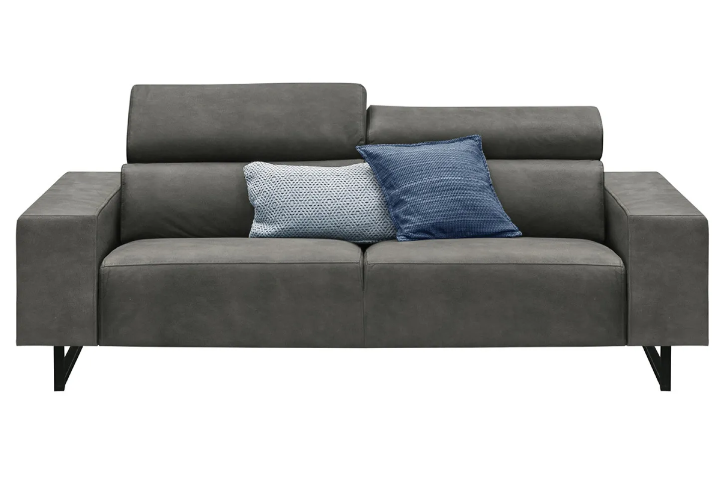 Stoere industriële 2-zitsbank met verstelbare hoofdsteunen en sledepoot in stof Supreme. Keuze uit diverse soorten bekledingen, kleuren en opstellingen.