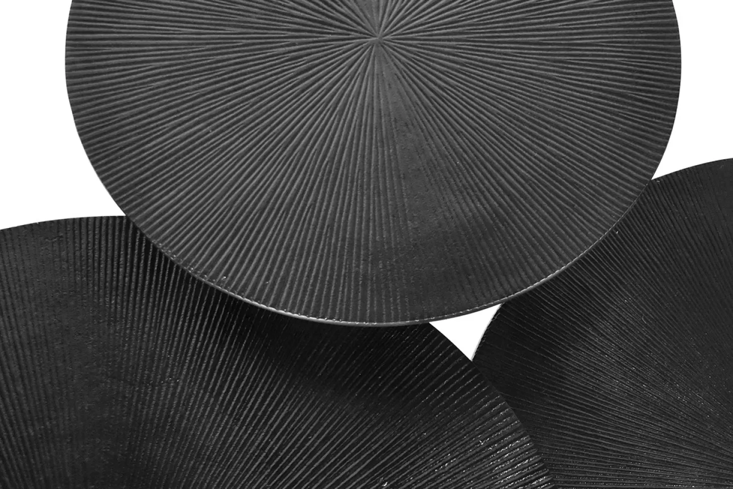 Tropea is een industriële set van 3 zwarte salontafels. Gemaakt van metaal en afgewerkt met speels reliëf in het tafelblad.